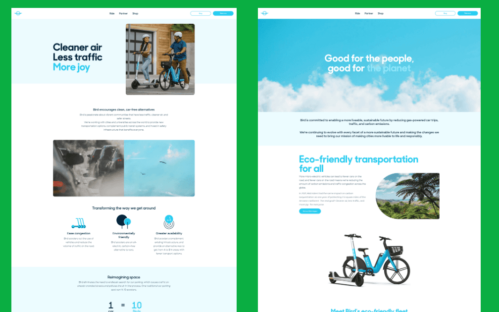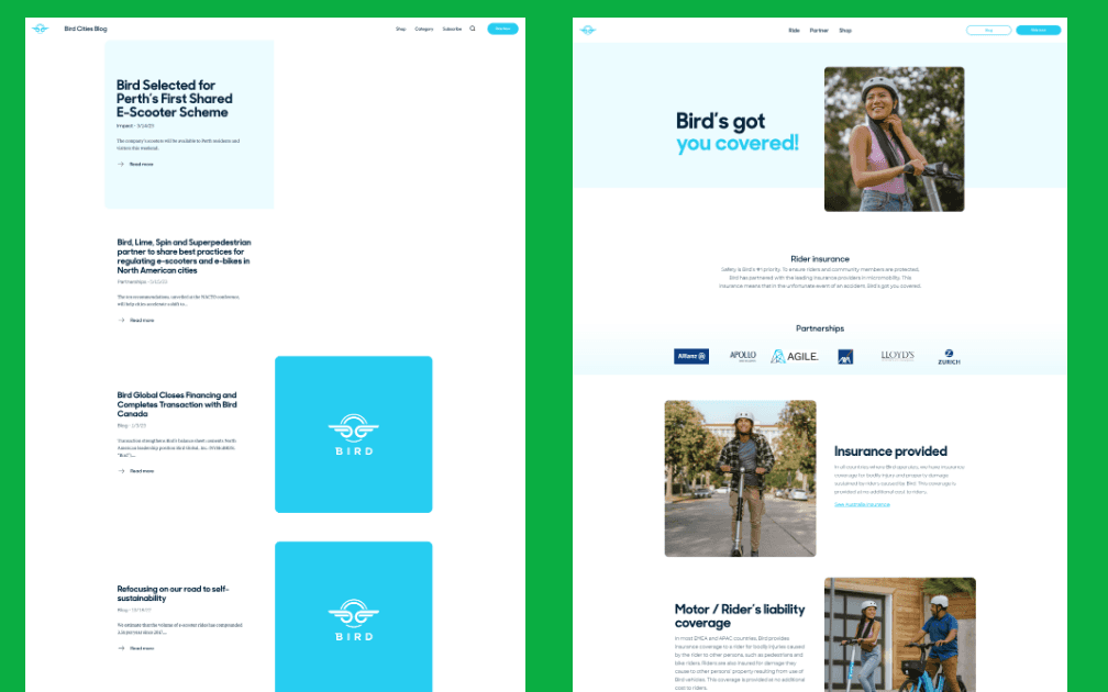 They launched a movement. As the global leader in micro-mobility, Bird needed a digital presence that matched the sleek, high-octane energy of their e-bikes and e-scooters. My role was to bridge the gap between their cutting-edge hardware and a frictionless digital experience, serving as a lead web designer and developer to ensure their online home felt as agile as their fleet.